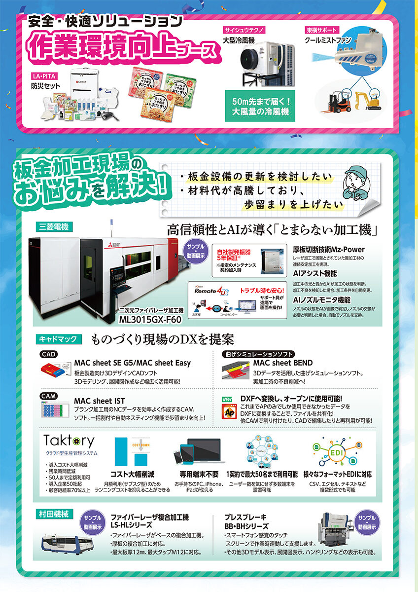 当日は実際に展示してある製品を試していただき、日頃のお困り事の解決や省力化・省人化に向けたご商談、更には特価商品なども数多く出品、限定企画も実施されており、企業様の今後のご発展に役に立てていただける展示会となっています。